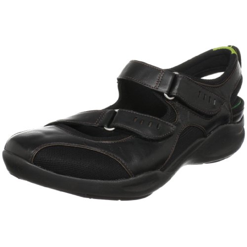 I have a problem with heel pain (pf) and have been looking for some good walking shoes that will look okay with shorts, capris, or long pants. We are planning an extensive walking tour of the northeast this summer and I know it will be hard to keep up with 3 teenage boys and my healthy long legged husband treking through NYC and Boston. I just bought this fabulous sandal/sneaker and am delighted. The contruction on the sole makes them rock forward as you walk and sort of propel you forward. Also, since I have one foot slightly longer and wider than the other, the velcro straps allow me to adjust the width of each shoe so that the fit is perfectly snug for each foot. They are pricey for a summer shoe but after paying $50 several times over for various sandals and sneakers that aggravate my heel pain and hence are in their boxes in my closet, the cost will be well worth it. I can look forward top our vacation without fear and dread now. Hurray!