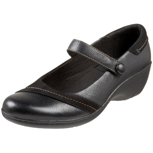 Clarks Women's Snow Dove Mary Jane The comfortable Snow Dove mary jane from Clarks has a soft tumbled leather upper with asymmetrical stitched suede overlays for added style. A traditional top strap with button detail helps secure the fit. This darling shoe offers excellent comfort ri ...