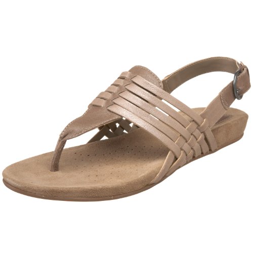 It only takes a second to fall under the spell of this magical sandal. The leather thong upper features thin straps that weave together at the sides and over the foot for easy charm. An adjustable slingback, cushioned footbed, and rubber sole conjur up comfort. We're entranced.