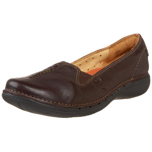 The supremely comfortable 'Un.fable' from Clarks Unstructured collection is a great basic that works with almost any outfit. Stylish cross stitching and decorative perforations. Full-grain leather upper with dual instep goring for a secure fit with easy on/off. Lambskin lining with reduced stitching surrounds the foot in luxurious softness to prevent irritation and blisters. Unique air circulation system features intake vents to allow cooler, fresh air to enter. Channeled mesh creates a defined path for warm, moist air to flow and escape through exhaust vents. Lightweight "Ultra Flex" EVA outsole reduces lift load and foot fatigue for all-day wear. Rubber outsole pads absorb shock and add traction without weight.