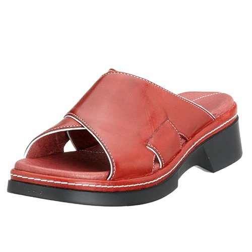 This is the casual sandal you'll find yourself reaching for day after day. With its stylish good looks and super-comfortable fit, it's no wonder why. The vegetable-tanned leather upper hugs the foot with a sleek crossover pattern and snappy contrast stitching and trim. The matching leather-wrapped footbed is cushioned for comfort and offers shock-absorbing qualities that ease fatigue. A polyurethane outsole provides flexibility, durability, and comfort. This mid-heel slide is sophisticated enough for officewear, but perfect for lunch dates, picnics, and other casual events. It comes in so many terrific colors, you'll definitely want more than one pair.
